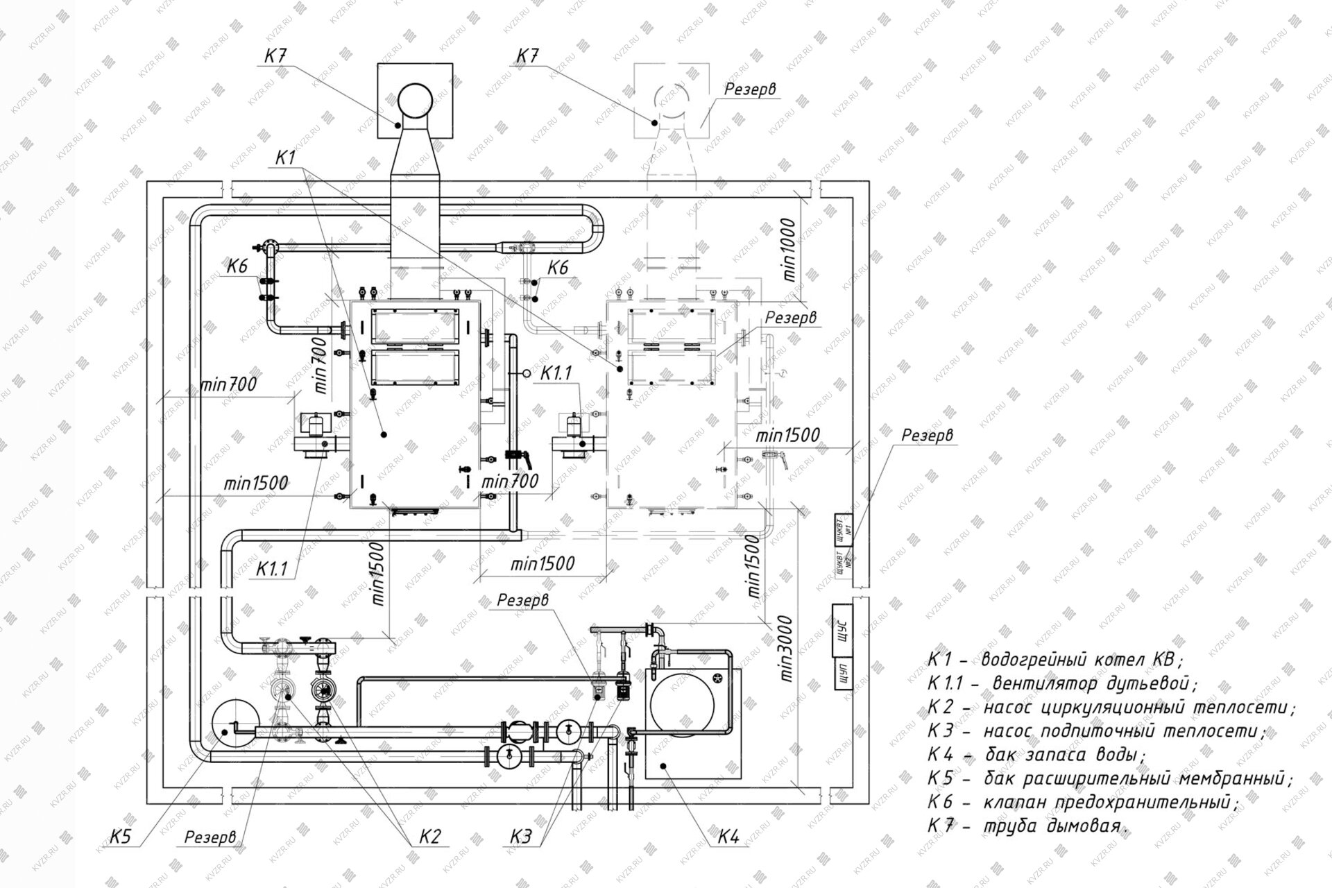 По запросу поставляется комплект обязательной арматуры, КИП и ДВ: затворы дисковые - 2 шт, запорные вентили - комплект, предохранительные клапаны - 2 шт, термометры с оправой - 2 шт, манометры с кранами - 2 шт, дутьевой вентилятор - 1 шт, система тяги и дутья. Котел 1000 кВт работает без вентилятора.