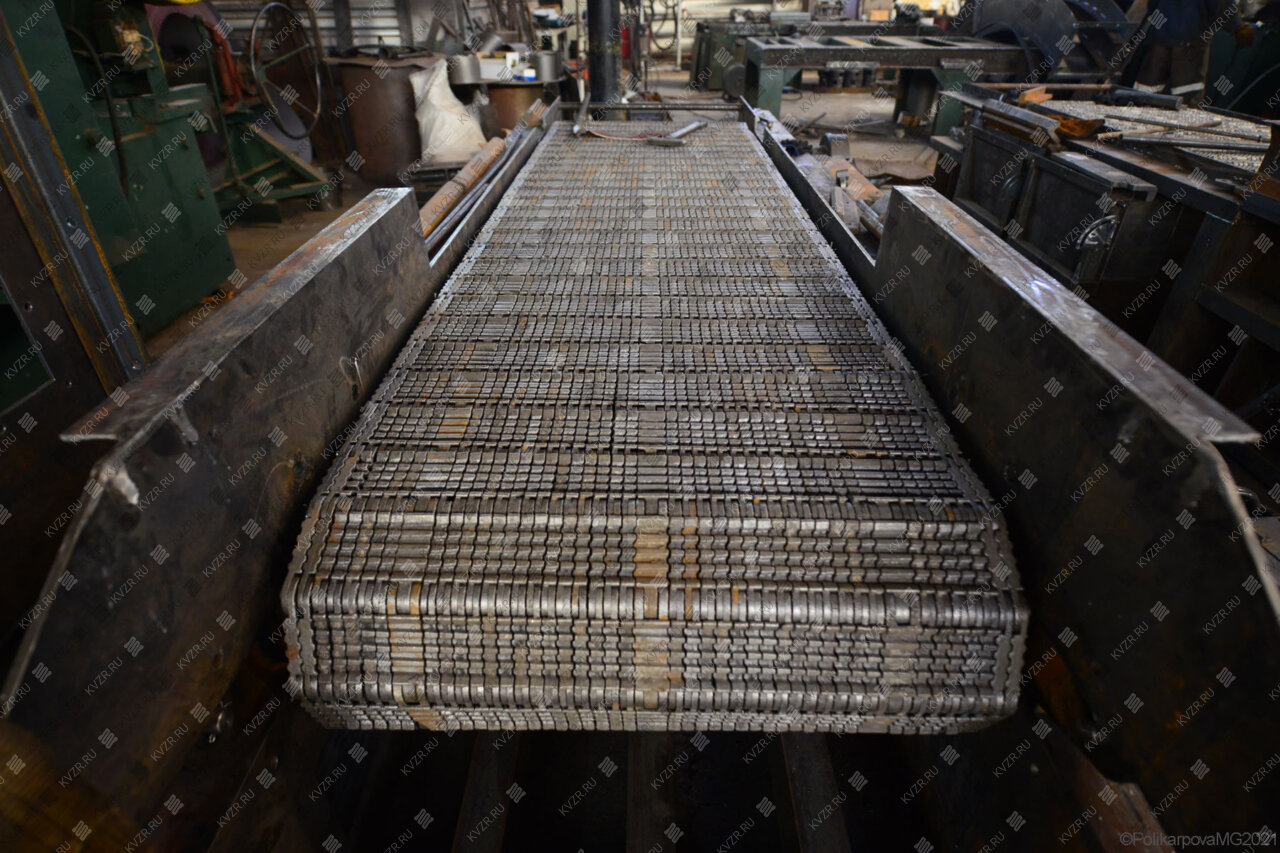 Механические топки с ленточной колосниковой решеткой прямого хода ТЛПХ состоят из угольного ящика, рамы с приводом и ведущим и ведомым валами, передвигающими ленточное колосниковое полотно, состоящее из трех типов колосников: крайних 23.1603.007 (084), ведущих 23.1603.008 (080) и ведомых 23.1603.006 (081). Колосники набираются на соединительном стержне. Ведущие колосники являются тяговыми, ведомые заполняют промежуток между ведущими колосниками, а крайние колосники выполняют роль бокового уплотнения.