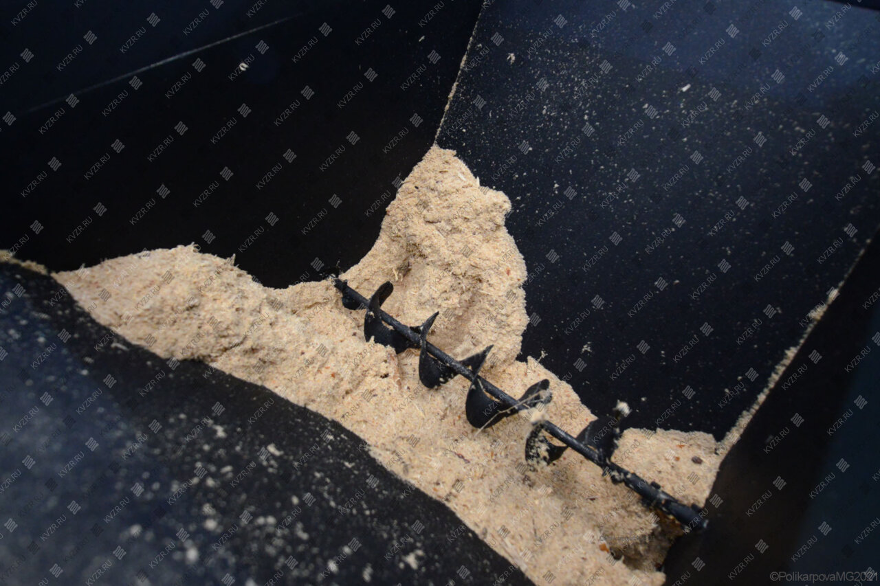 Бункер и привод питателя располагаются на общей раме. Конструкция бункера и узел соединения со шнековым питателем позволяет полностью опорожнять бункер за счет питателя топлива.