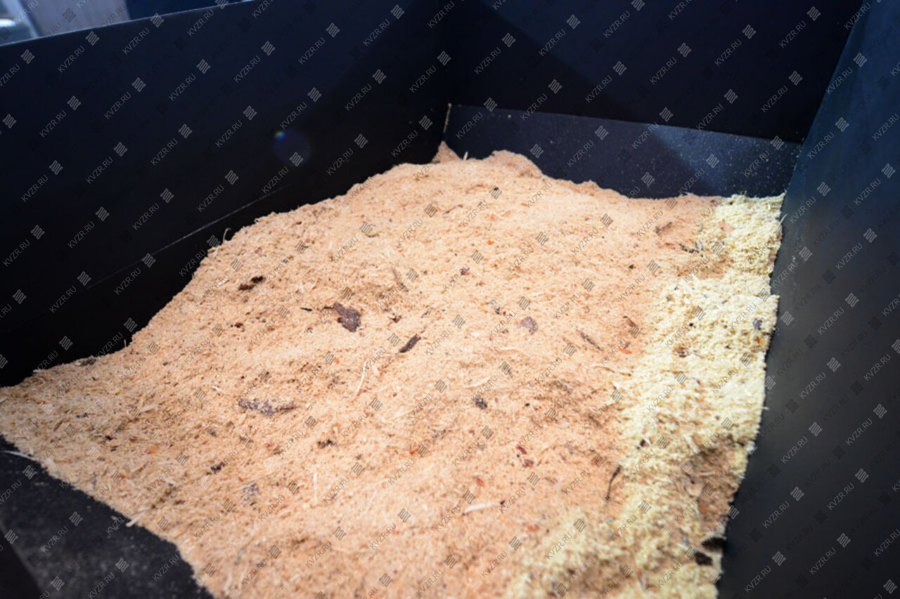 Котел на опилках для отопления изготавливается водотрубным стальным с бункером для сырых опилок, плунжерным питателем, вихревой топкой, котельного блока с топочной камерой для горения опилок и конвективными пакетами для нагрева воды до требуемой температуры.