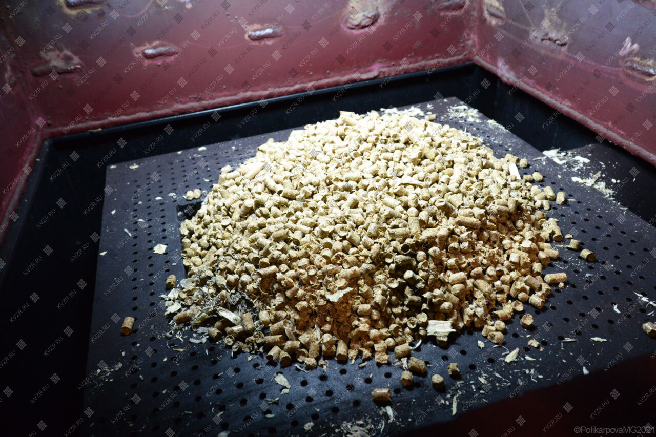 Пелетный котел изготавливается водотрубным стальным, с бункером, шнековым питателем, вихревой топкой, котельным блоком с топочной камерой для горения и конвективными пакетами для нагрева воды до требуемой температуры.